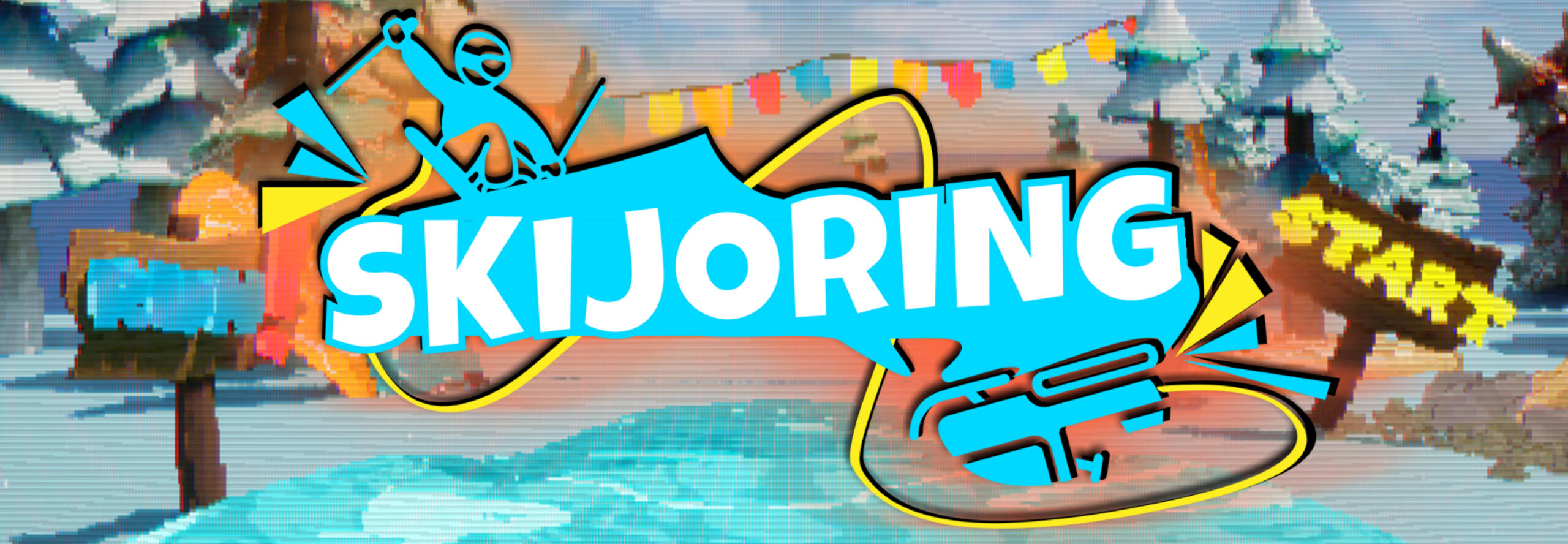 Skijoring, by Team Evil Evil, is a stylish co-op arcade skiing game. One player leads as a snowmobiler with player 2, a skier, tethered to them. Madness ensues.